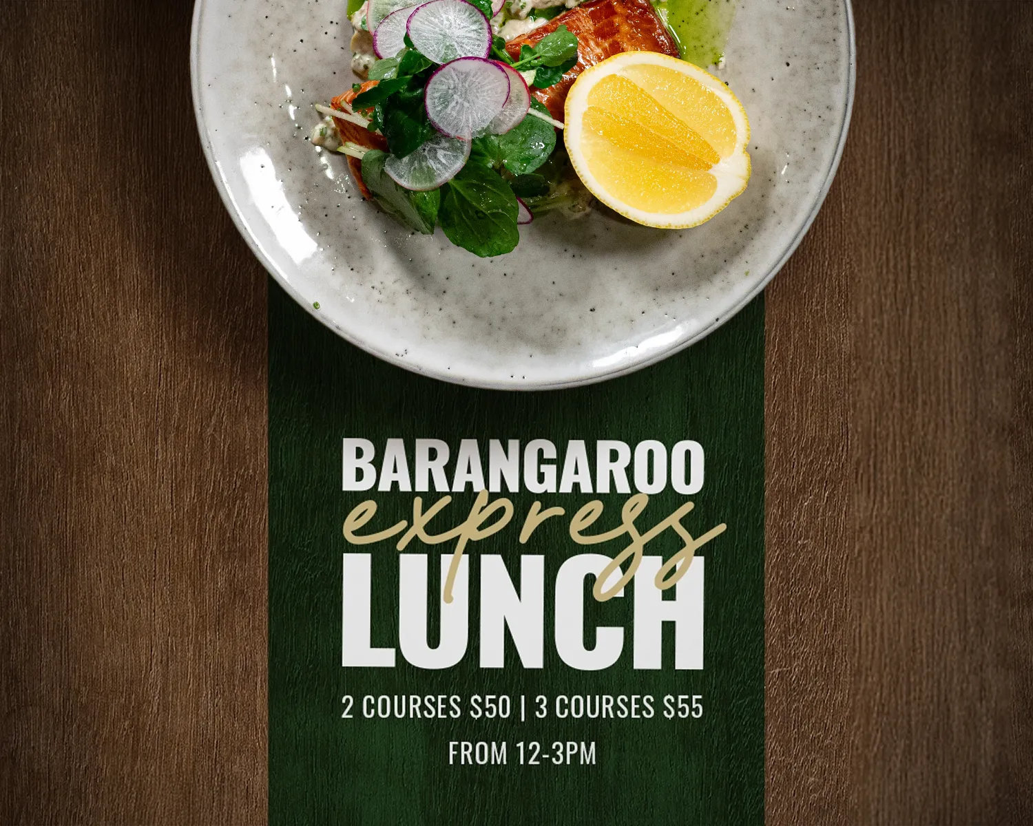 BARANGAROO onlyLooking for a delicious and efficient lunch? We've got you covered with our Express Lunch! Available 12 PM to 3 PM, you can choose between 2 courses for $50 or 3 courses for $55.